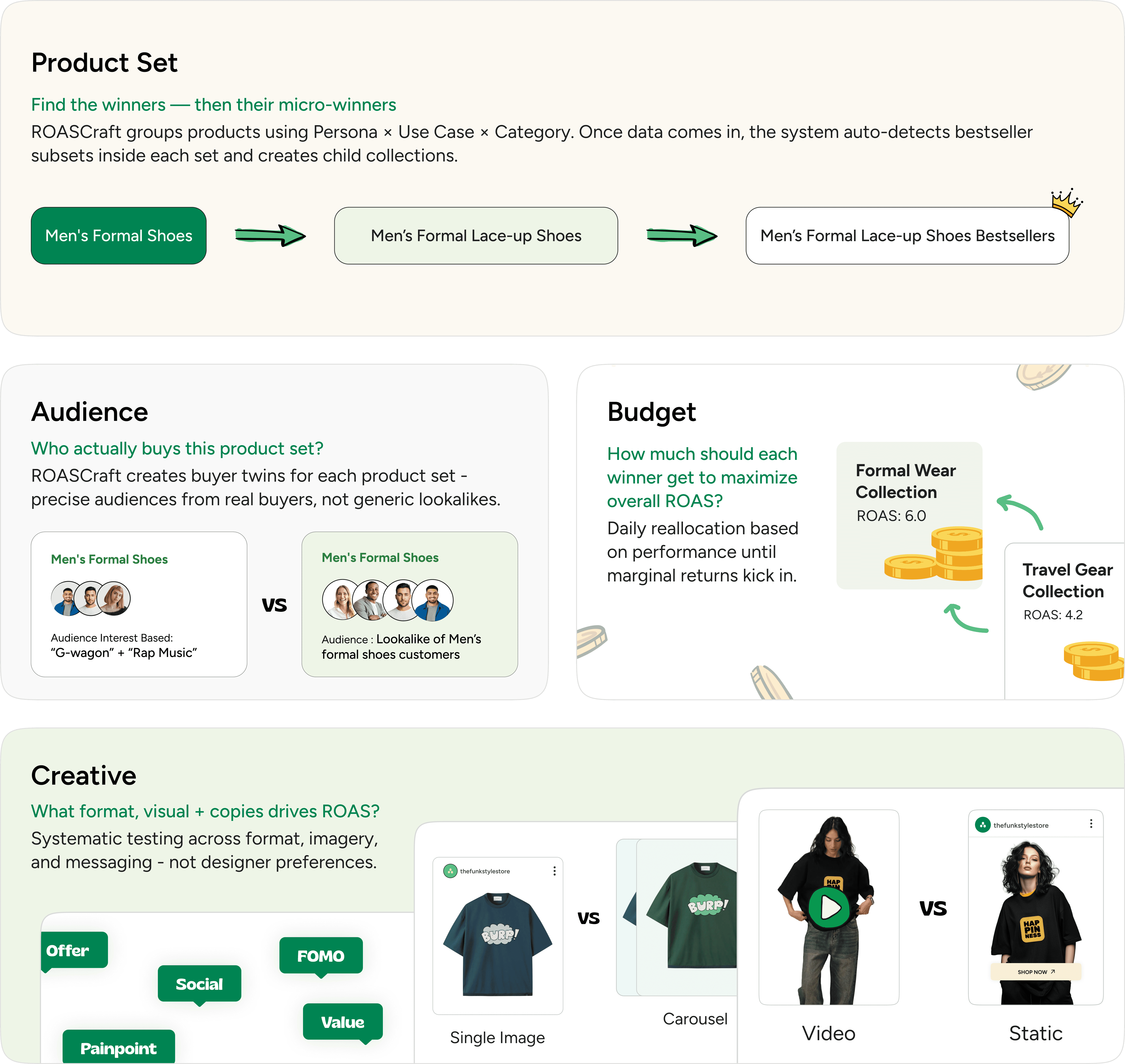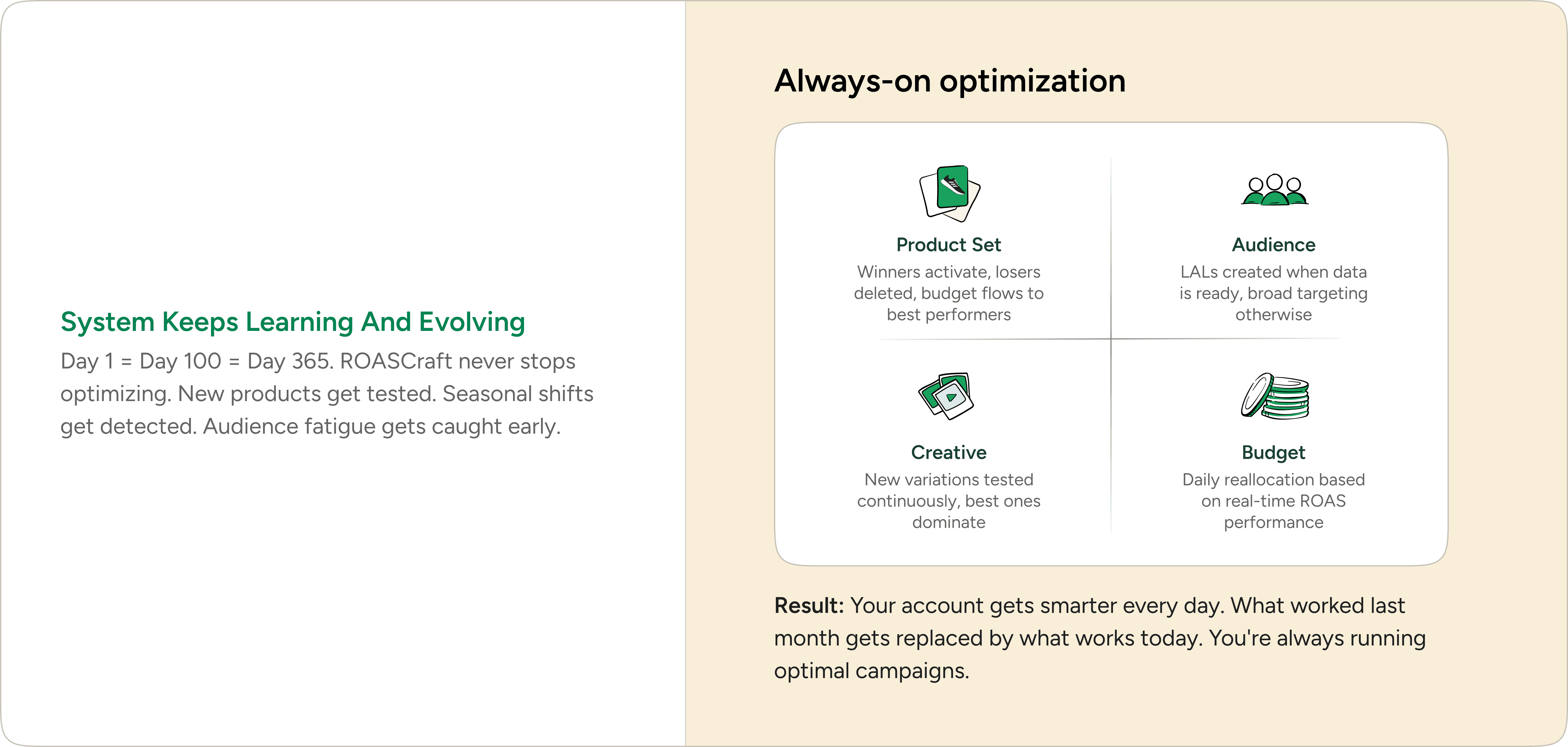 Achieve your optimal ROAS with ROASCraft. Complete science. Zero hunches. Maximum ROAS.